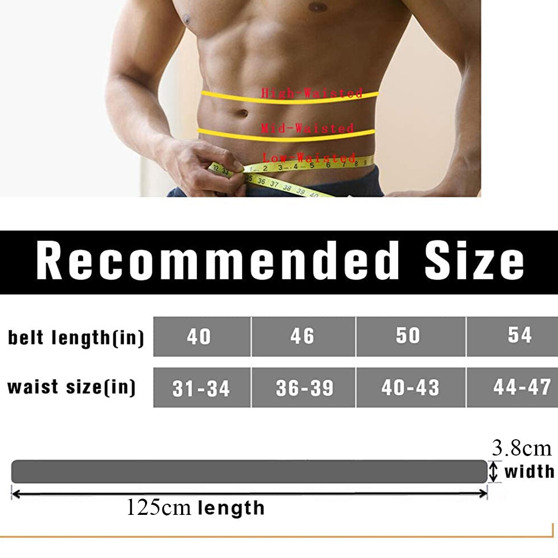 Waistband body size: length 125cm, width 3.8cm.
