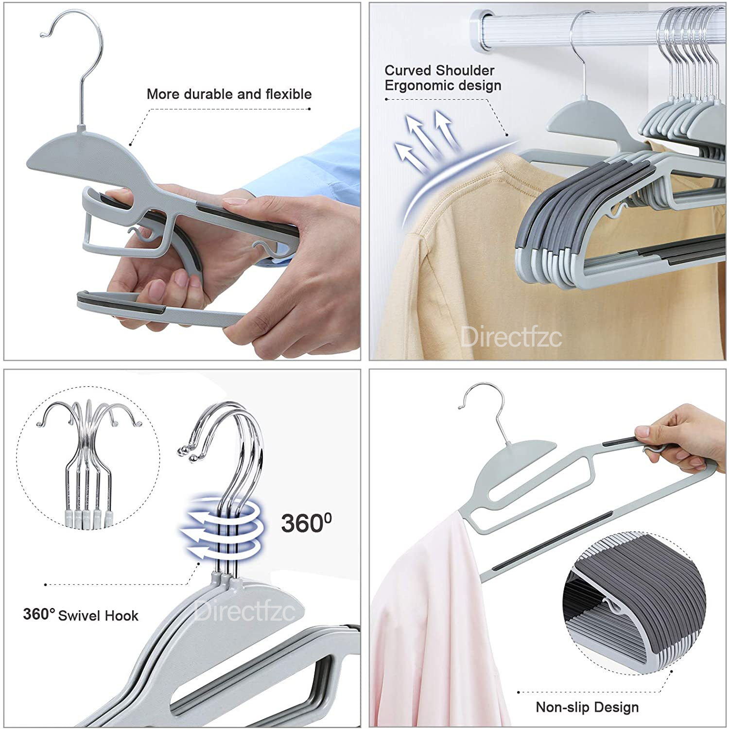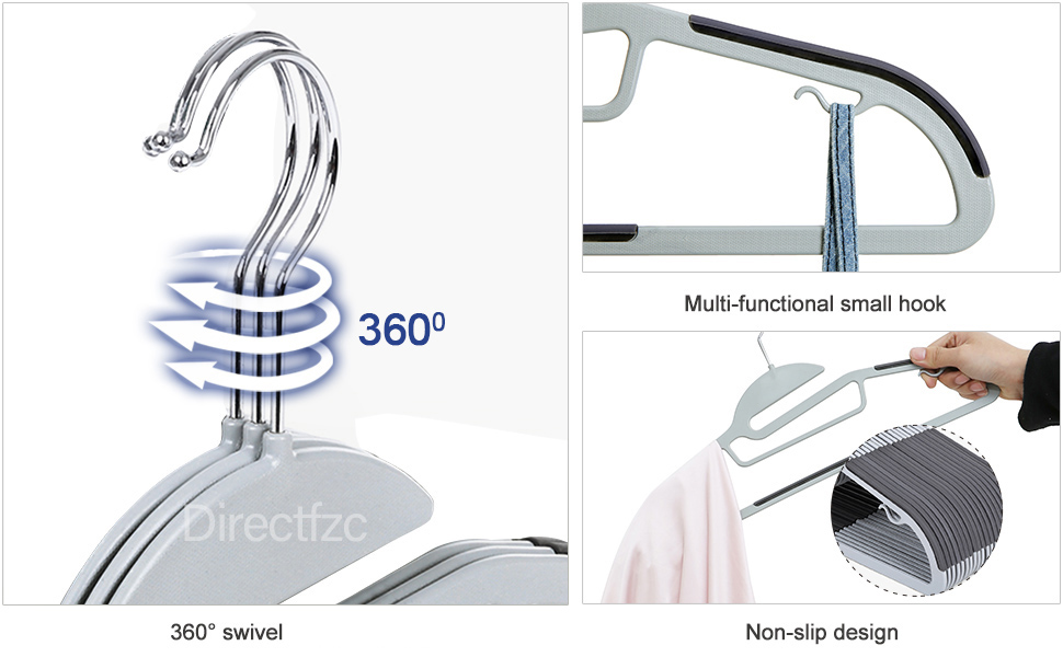 • STURDY & DURABLE - This premium quality clothes plastic hangers are made of high grade plastic and 360-degree swivel hook, hold up to 5kg