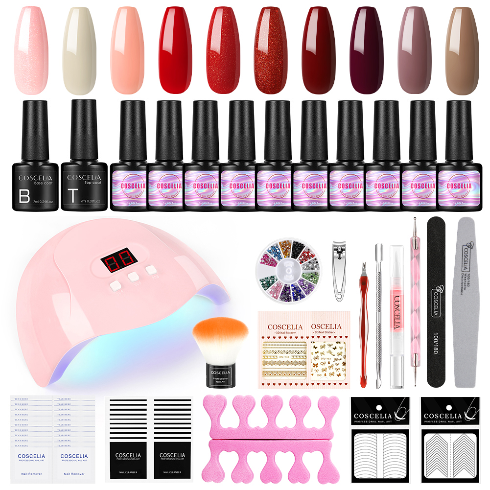 COSCELIA 36W UV LED Lamp Nail Lacquer 8ml 10 Color Gel Polish Nail Decoration Set Nail Art Kit Manicure Tool
