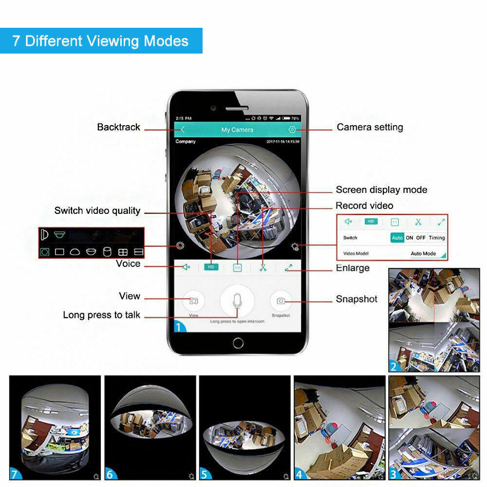 • 360 degree panoramic view, see the whole picture in the home, without rotating the camera, monitor without dead Angle.