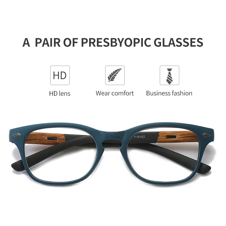 [SG Seller]HOMY Fashion Simple Business HD Presbyopia Eyewear Reading Glasses Wood Pattern Unisex Portable Ultra Light High Quality (Gift for parents)(HM9001T)Blue +100(+1.0)+150(+1.5)+200(+2.0)+250(2