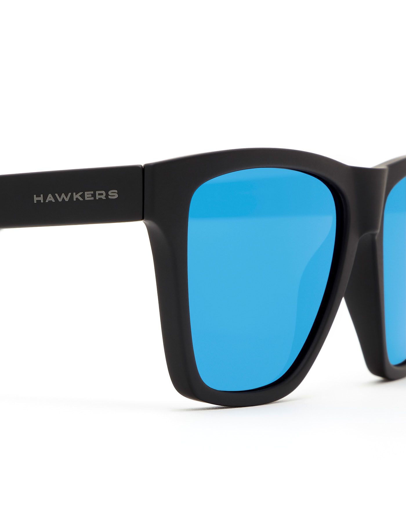 Black, rubber-finish frame and mirrored blue lenses.