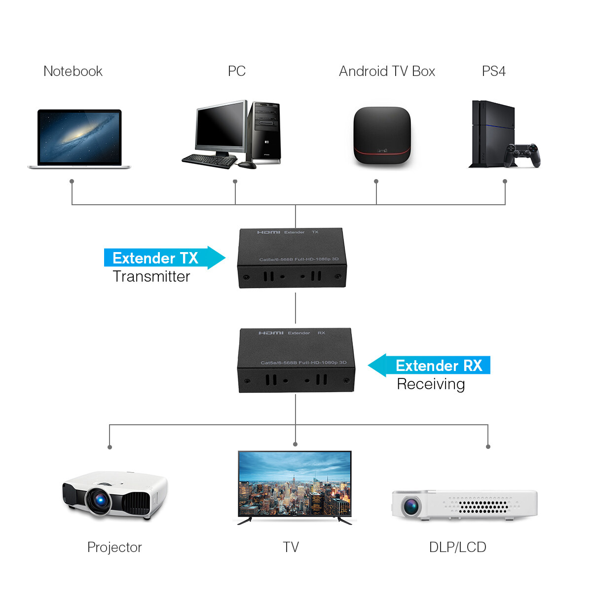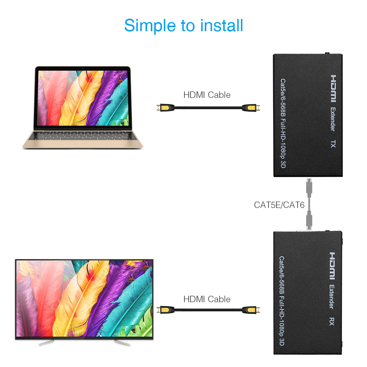 1080P HDMI Network Extender Over Single Cable CAT5E/6 Ethernet RJ45 3D FHD 60M - US