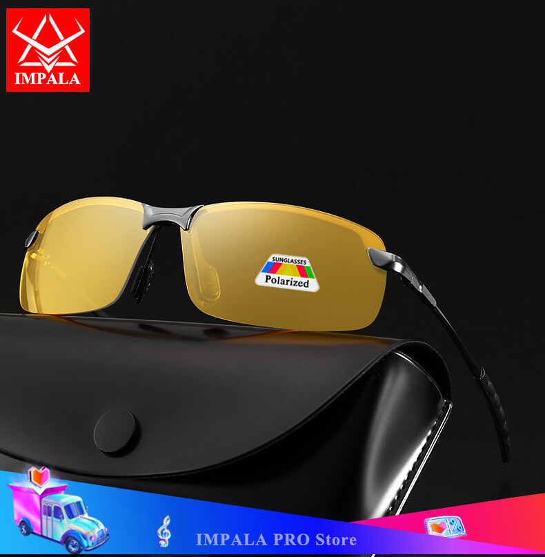 IMPALA PG036NW Fashion Polarized Night Vision Glasses for Men Women Driving Cycling at Night Anti-Glare Anti High Beam See More Clearly at Night UV Protection Resin Lens Can't Broken
