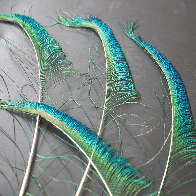 Peacock feathers come from legal farms, natural feathers. All feathers are sterilized by high temperature. Under different lighting conditions, the feathers have different colors, and the feathers that are photographed under sufficient light look better.