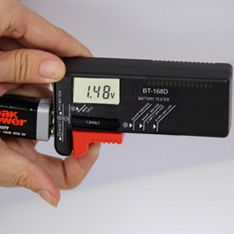 Size: 11.1*6.05*2.6cm/5.26*5.39*2.34cm/11.3x6.4x3cmColor: blackMaterial: ABSFeatures:<< Wide application: Works with all 1.5v batteries, AA, AAA, C, D, button cells, and 9v batteries<< Accurate and easy to read: Analog display needle moves on a color-coded, calibrated scale to quickly identify "good" (green), "low" (yellow), and "replace/recharge" (red) battery status. << Function: Can be used to quickly test the capacity of battery.<< Easy to carry: Compact and small size, easy to carry around, you can use anytime and anywhere.<< No power: No battery needed for operation, so convenient to use.<< Use: Perfect for someone who uses regular or rechargeable batteries on a regular basis Notes:1. Please allowed 1-3mm differences due to manual measurement, thank you for your understanding!2. Due to the difference between different monitors, please understand that the picture may not reflect the actual color of the item.Package list:1 x battery testerSize: please allow 1-2cm differs due to manual measurement, thanks.Note: Due to the difference between different monitors, the picture may not reflect the actual color of the item. We guarantee the style is the same as shown in the pictures, but not the same performance on different bodies as on the model. Thank you!