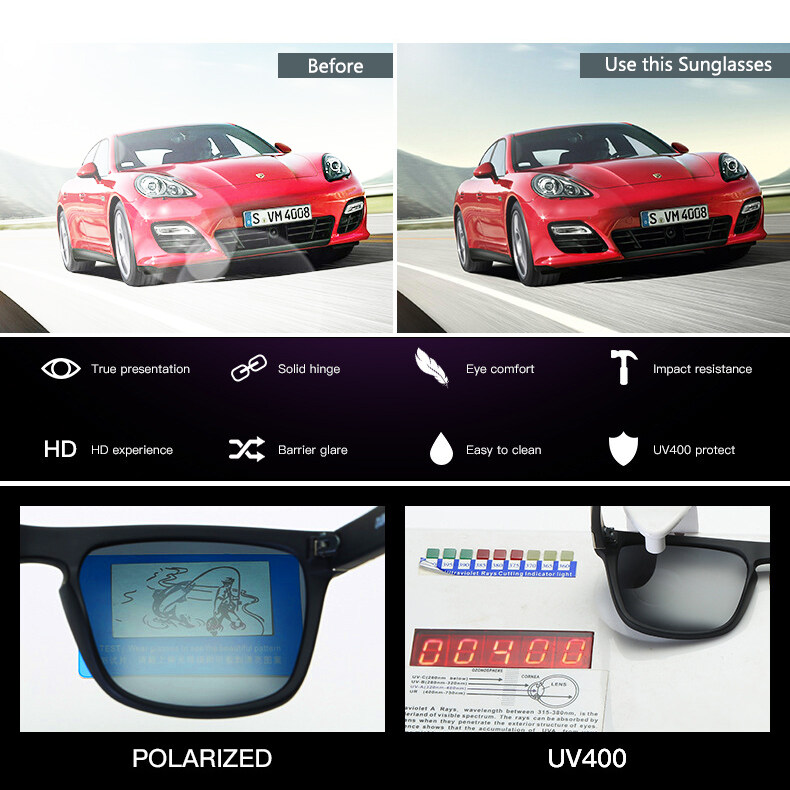 This polarized sunglasses lens adopts thickened and strengthened lenses. The advantages of strengthened lenses are wear resistance, good flexibility, strong impact resistance, clear vision and good anti-glare effect!