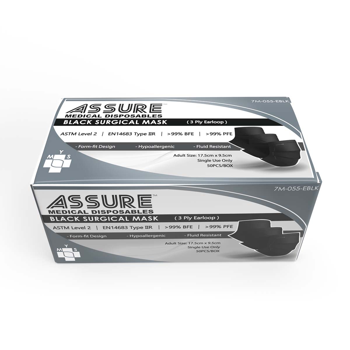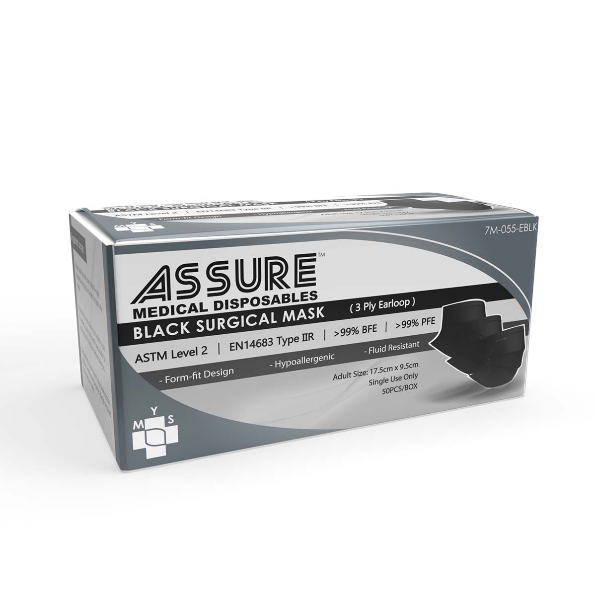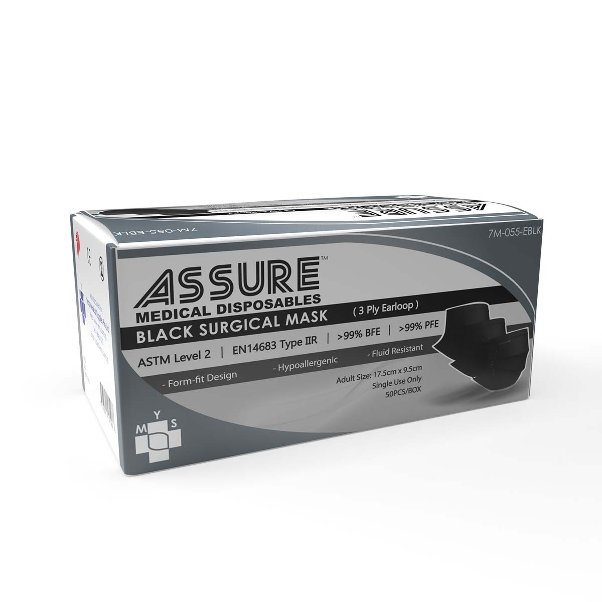 ASSURE surgical masks are designed to fit comfortably on most adults and children faces with the elastic loop & metal nose piece that promotes fitting & comfort for long term wearing, providing both Protection & Breathability.