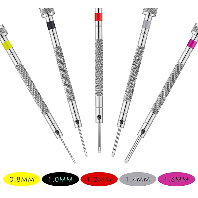 Size details: micro-type precision screwdriver set contains various sizes, 0.80 mm, 1.00 mm, 1.20 mm, 1.40 mm, 1.60 mm; A nice combination for your daily usage and replacement, and this set has a long service cycle Convenient and practical: featuring color-coded cap, screwdrivers precision jewelry screwdriver set is simple and practical, and can quickly identify the size; Rust-proof blade and 10 screwdrivers are workmanlike; Turn the handle cover and press the machine to easily operate the screwdriver by hand. Delicate design: wrist and style screwdrivers have nice weighting and quality durability; It is easy and comfortable to apply owing to rugged stainless steel and textured gripping surfaces; Each tool is durable and corrosion resistant to use with 9 cm/ 3.54 inch in length; Mini Screwdriver is slim, suitable for small screws Extensive usage: watch repair tools are not only suitable for a seasoned watch enthusiast, but also are nice to the beginner to the watch world; You will be amazed by exquisite wrists and style; Durable and advanced, they contain the functionality of adjusting your watch, meanwhile avoid using other gadgets to scratch the watch Multiple function: screwdriver repair kit is not only suitable for watch repair, watch battery replacement, wrist bracelet screw-button disassembly, glasses repair, jewelry work and electronic repair, but also fit for various watches, glasses, straps, hands and accessories; Each screwdriver is equipped with a spare blade replacement