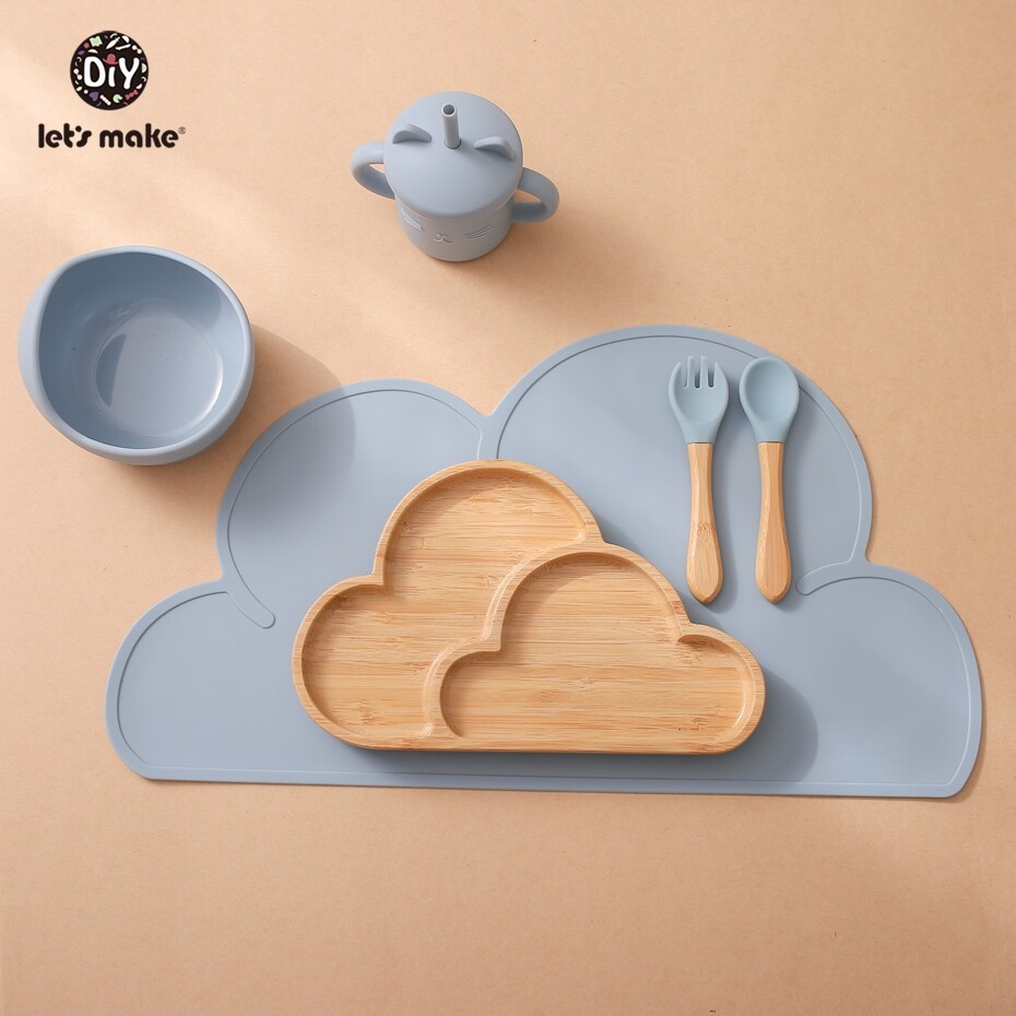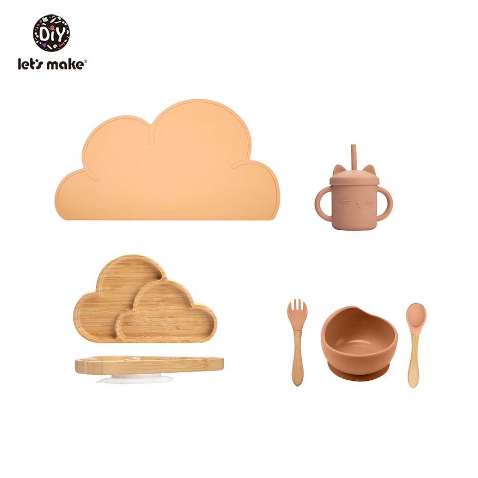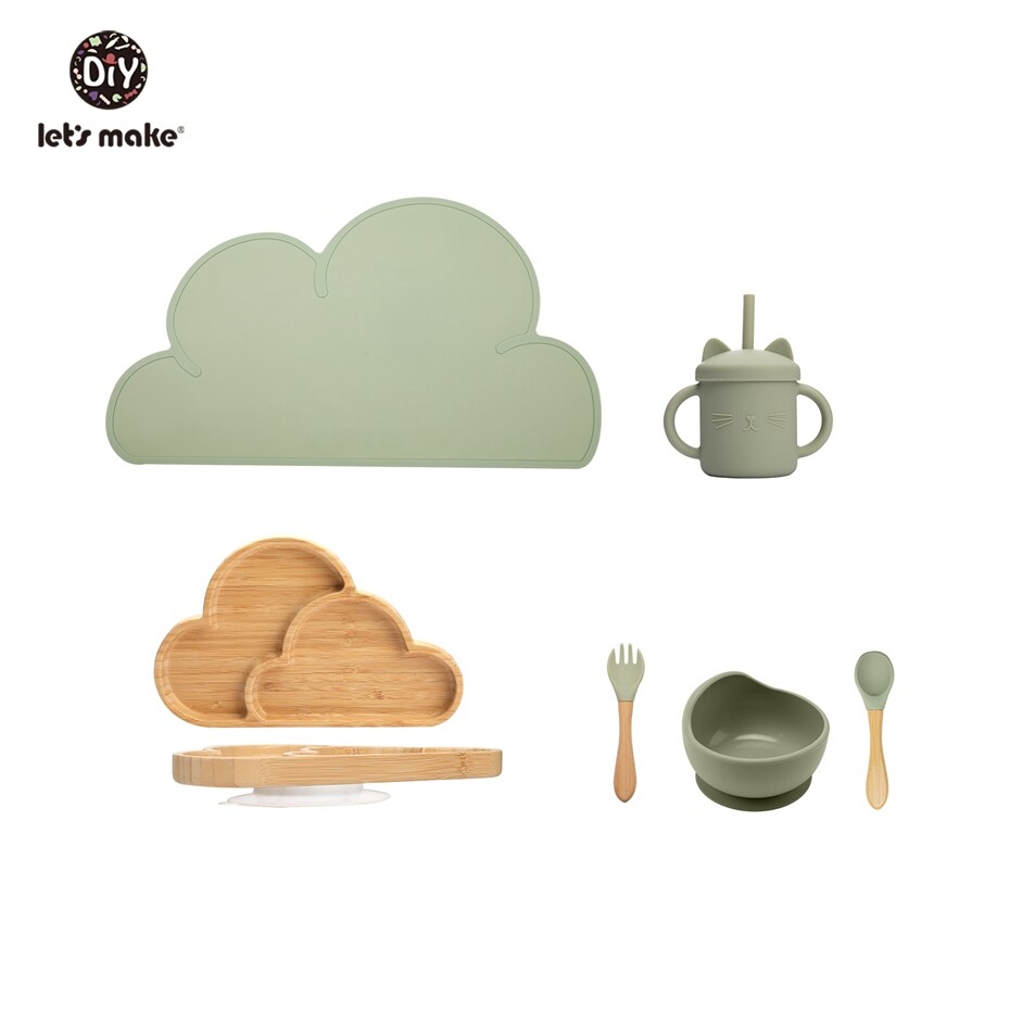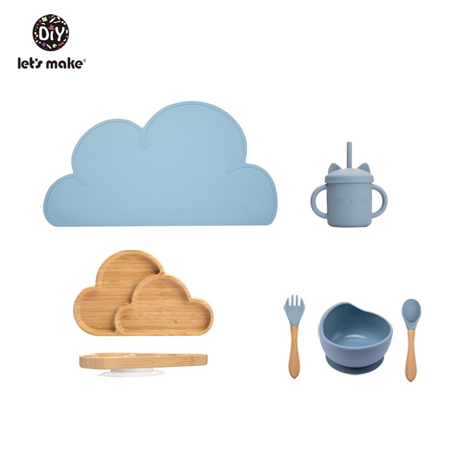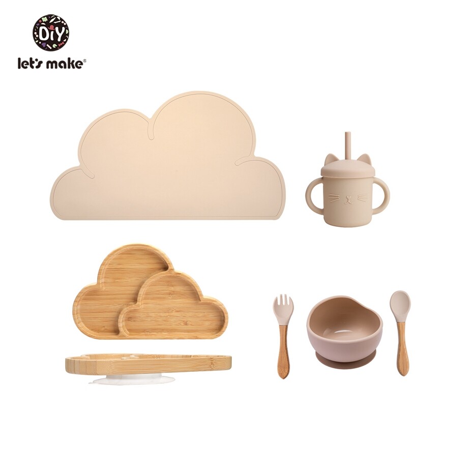 Let's Make Baby Feeding Essentials 6pcs/set Silicone Suction Bowl Bamboo Cloud Plate Toddler First Meal Gift