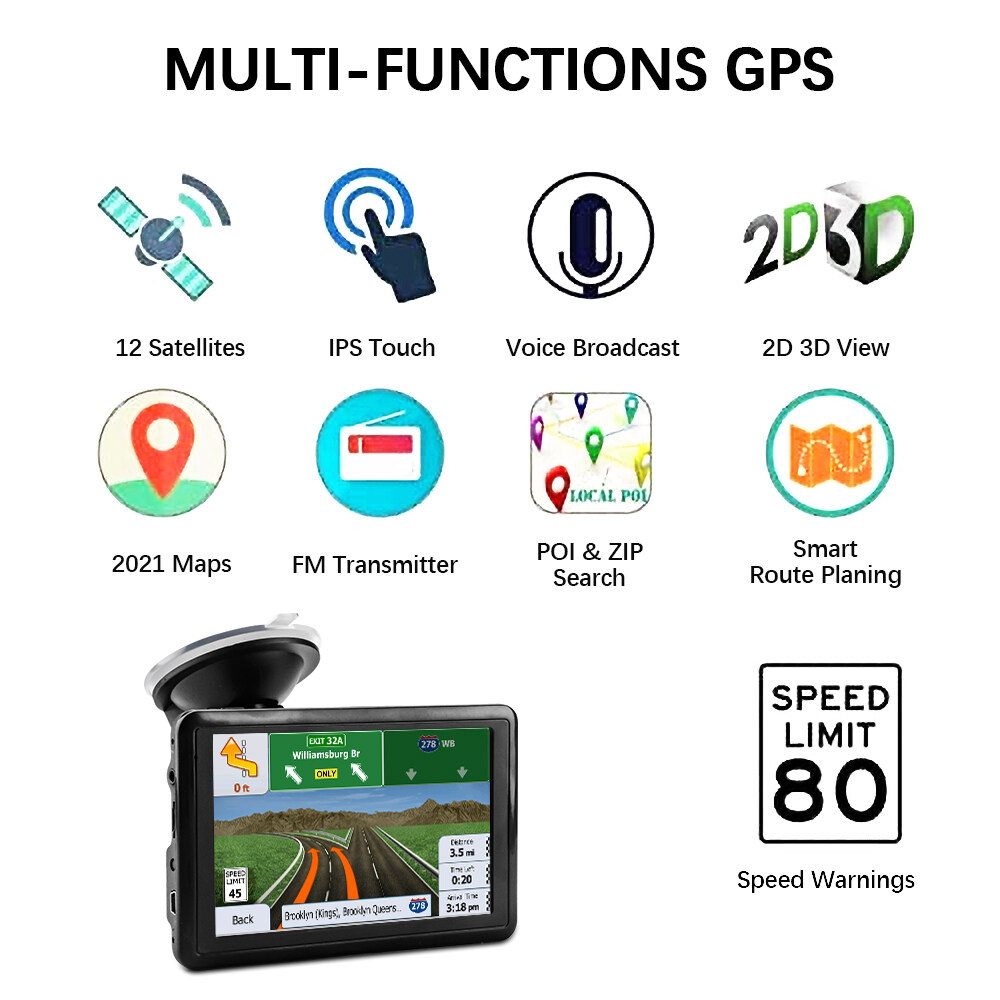 Features:1. [Lifetime free map update] Pre-installed detailed latest maps in 2022, lifetime free updates, maps of the purchased countries are pre-installed before the product is released, including the United States, Canada, and Mexico. If you want to update the map or need maps for other countries, please contact us and we will give you the download address and guide. (The operation changes the country according to the corresponding sales country, if you have any questions, please contact the development)2, [Performance upgrade] The GPS satellite navigation system is equipped with a high-performance CPU, uses a 1200mah polymer battery, built-in 8GB ROM 256MB RAM, supports a maximum of 32G expansion memory, and has enough space for you to store maps and data. Equipped with car charger, USB cable (can be charged indoors), suction cup bracket, back clip, instruction manual (excluding SD/TF card)3, [Intelligent voice broadcast and 7-inch touch screen] GPS navigation system has a voice navigation system (multi-language version), comprehensive voice prompts and safe navigation direction guidance, inform speed limit and estimated time of arrival, intelligent error correction. Let you reach your destination faster, safer and more accurately. 7-inch high-resolution touchscreen with 800 x 480 resolution, sharp and responsive4,【Best Navigation】You can choose from more than 30+ languages voices that will speak the directions one by one, so you don't have to stare at the GPS screen all the time. FM boost volume function (without radio): It can transmit the navigation audio to the car stereo, increase the volume of the navigation radio, make it clearer. Make your driving safer, reduce fatigue driving, stay away from fines and enjoy driving.5, [Multi-function] (1) Fast and economical intelligent route planning, (2) Fast and accurate GPS tracking (3) Provides 7 vehicle modes support, car, truck, bicycle, bus, ambulance, taxi, ( 4) Support zip code, address, POI and coordinates, (5) Broadcast of street name, current speed, lane guidance and estimated time of arrivalFunction parameter:Display: 5-inch high-definition TFT touch screenRAM: 8GBResolution: 800*480Cache: 256MExpansion card slot: maximum support 32G TF cardStandard function: AVI/MP4/3GP/MPG/MP3/WMA/FM transmitter/gameBattery: Polymer A-gauge lithium battery 1200MAHProduct packaging:Navigator, cigarette lighter cable, usb cable, suction cup bracket, manual