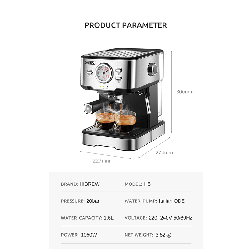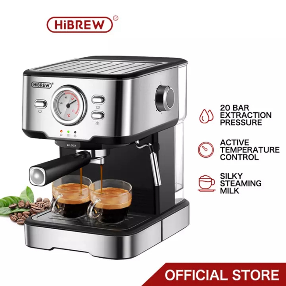 HiBREW 20 Bar Espresso Coffee Maker Machine With Foaming Milk Frother Wand for Espresso, Cappuccino, Latte and Mocha