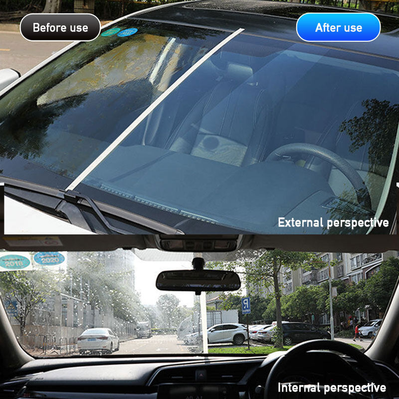 1. It contains special grinding particles and produces chemical reaction with the glass. The oil stain and stain on the glass are taken away through grinding operation. At the same time, repair the gap on the glass surface and protect the cleanliness of the glass surface again. The effect is lasting. This product can remove the oil film in 10 seconds, with small volume and no gap.2.Easily remove nine stains, paint / resin / shellac / oil film / coating / asphalt / bird droppings / rain tracks / scratches, etc.3.Wash the sand particles on the glass surface, take the product and rub it on the glass with a sponge brush. Finally, clean it with clean water and wipe the glass dry.It is easy to use and no construction is needed.4. If there is oil film on the front window, it will seriously affect the driving safety, because the eyes are seriously blocked. If the road condition is not clear, pedestrians in front are easy to cause traffic accidents. You need a cleaner that can remove the oil film to help you eliminate the hidden driving risk.