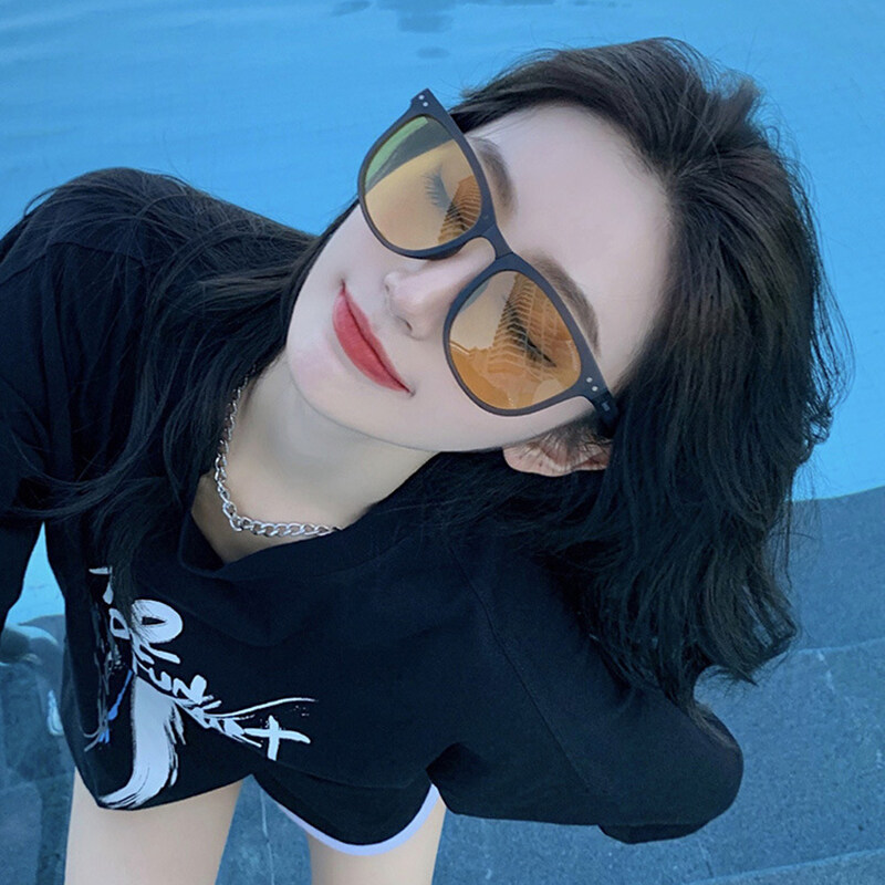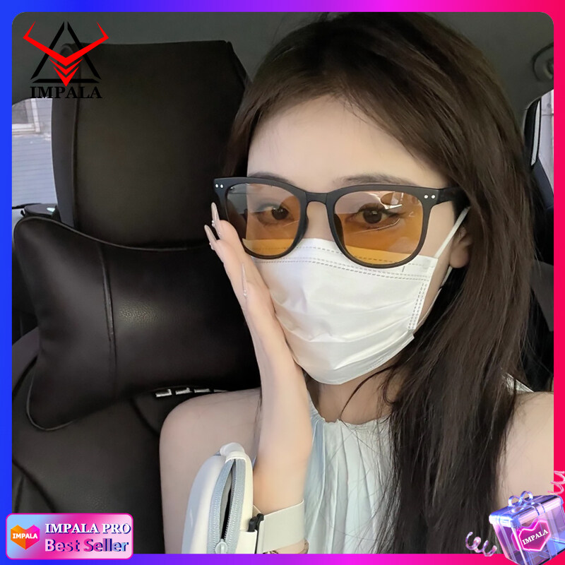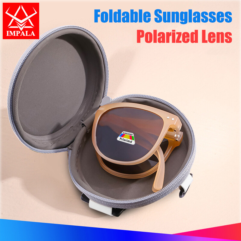 IMPALA PG1645Y Fashion Korean Style Polarized Foldable Sunglasses for Women HD Lens Sun Glasses with Cute Round Glasses Case Anti Glare UV400 Protective Sun Glasses