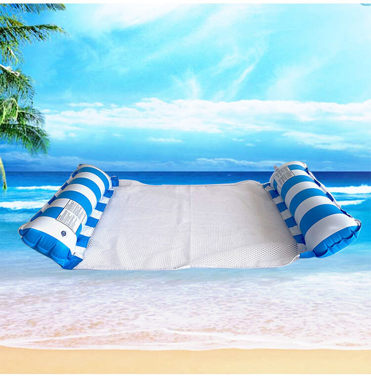 Features:1. Made of high quality PVC and nylon mesh material, durable to use.2. Converts to hammock, lounge chair, drifter, and exercise saddle.3. Comfort of cool weave fabric which contours comfortably to your desired floating need.4. Easily inflates or Deflates pillow with lock inflation system for easy portability.5. Perfect for the ocean, lake, river, or pool.