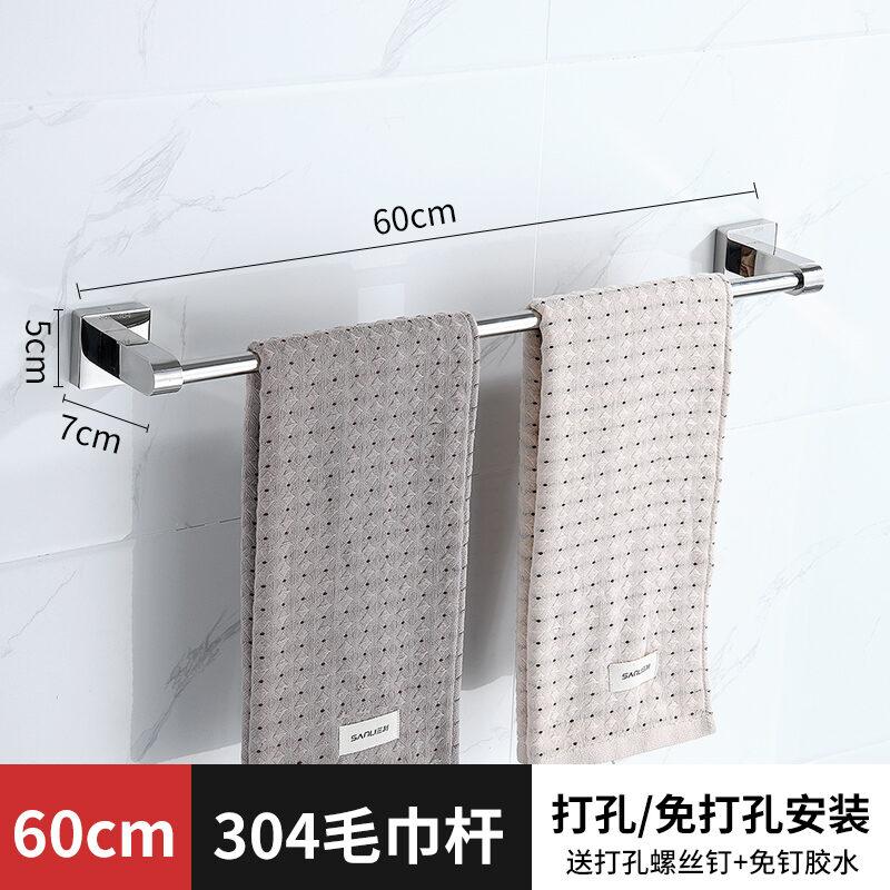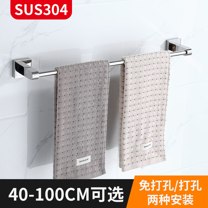Towel Bar Punch-free Bathroom 304 Stainless Steel Thickened Towel Rack Bathroom Wall Hanging Rack Single Rod