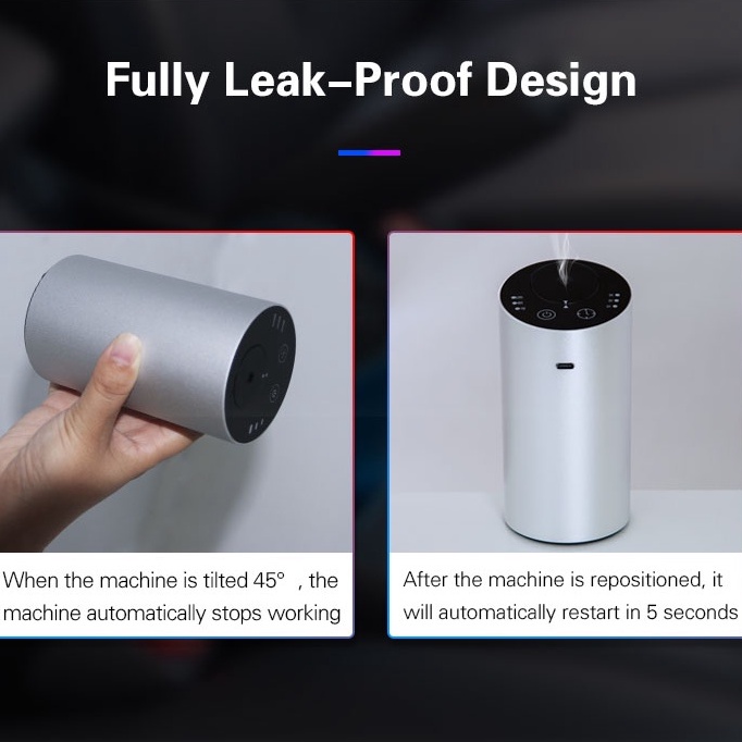- The diffuser adopts the latest cold spray technology, there is no need to add water or heat it up. It directly atomizes the essential oil into 1-3 nanoparticles and sprays it out from the nozzle. With this technology, it doesn’t destroy the molecular structure of the oil, making it easier to be absorbed by the human body, helping to boost your energy levels & immune system, improve quality of sleep & ability to focus, soothe your mood & relieve stress, create calming & comforting atmosphere, eliminate headaches & reduce chronic pain & more! - Superior Aromatherapy Experience. No Water. No Heat. Just 100% pure oil diffusion aromatherapy - Multiple location use. It can be used in a car, kitchen, bathroom, living room, bedroom, etc - Touch screen panel, enabling easy control - Removable nozzle design. Easy to clean - USB charging, easy and convenient - Rechargeable (including battery), it takes 2-3 hours to fully charge the diffuser, a fully charged diffuser can work continuously for 10 hours Product Specifications: - Dimension: 69x69x135mm - Material: Aluminium Alloy - Battery Capacity: 2000mAh - Charging Volatge: DC5V1A - Suitable Essential Oil Bottle Size: 10/15/20ml (20ml Bottle Provided) - USB Length: 100cm - Wattage: 3W - Capacity: 20ml - Weight: 390g FAQ: - How long does it take to fully charge the diffuser? A: 2-3 Hrs - What type of essential oil does the diffuser use? A: Pure essential oil or high volatile oil without impurities - Why not be able to see the mist? A: It’s normal, the mist particles are only in 1-3 nanoscale, which is difficult to be seen by eyes. However, using a phone torchlight can be helpful to see the mist. Alternative you may use your hand to block the outlet you will feel the diffuser pressure. - Can I use another essential oil bottle? A: Yes you may use a standard screw thread essential oil bottle which a diameter lesser than 30mm, bottle height lesser than 72mm. However, we do have provided a 20ml bottle you may refill it or use your preference bottle. What's in the Box (Standard Package) 1 X Diffuser 1 X USB Cable 1 X Essential Oil Refill Bottle 1 X User Manual 1 Months Local Warranty *Terms and conditions applied * #AirPurifier # essentialoil #Gift #Aromatic #Moisturizing #Deodorization #Car #AirCleaner #Sprayer #Fragrance #Aroma #Aromatherapy #diffuser