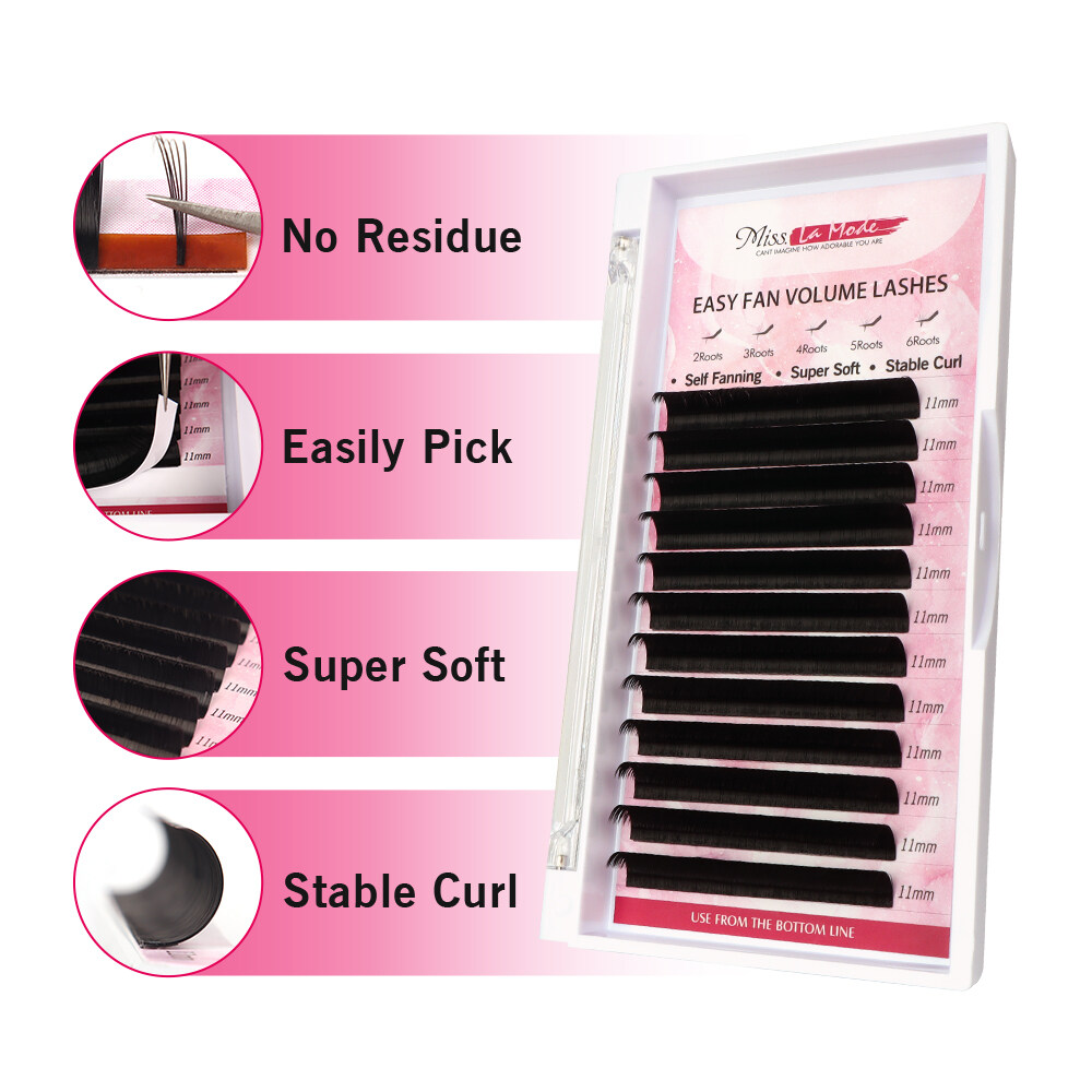 Misslamode Easy Fan Eyelash Extensions 1sec Fast Blooming Eyelashes 0.07 C/D/D+ Volume Eyelash Extension
