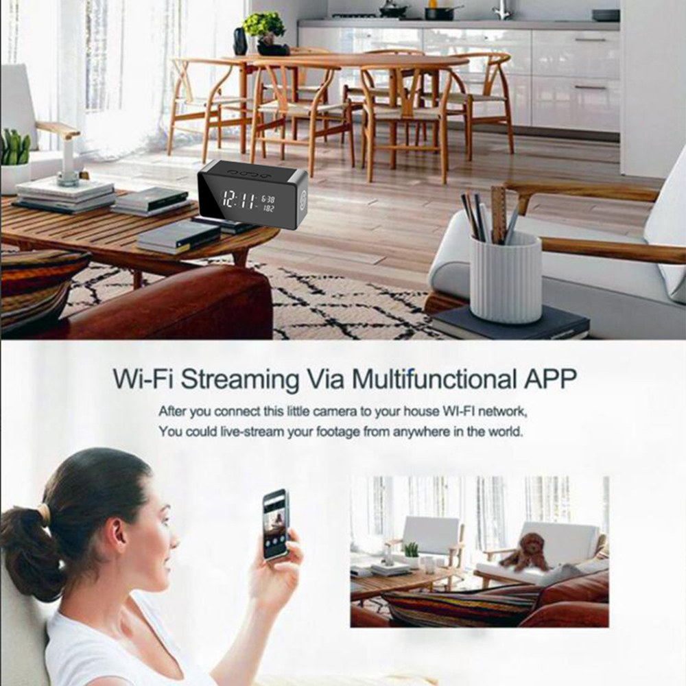 Original Wifi Electronic Clock Camera 4K/1080P Hidden Wireless Micro Camera Infrared Night Vision Digital Clock Remote Monitoring Motion Detection 1600mAh Monitoring Camera Support 128G TF Card