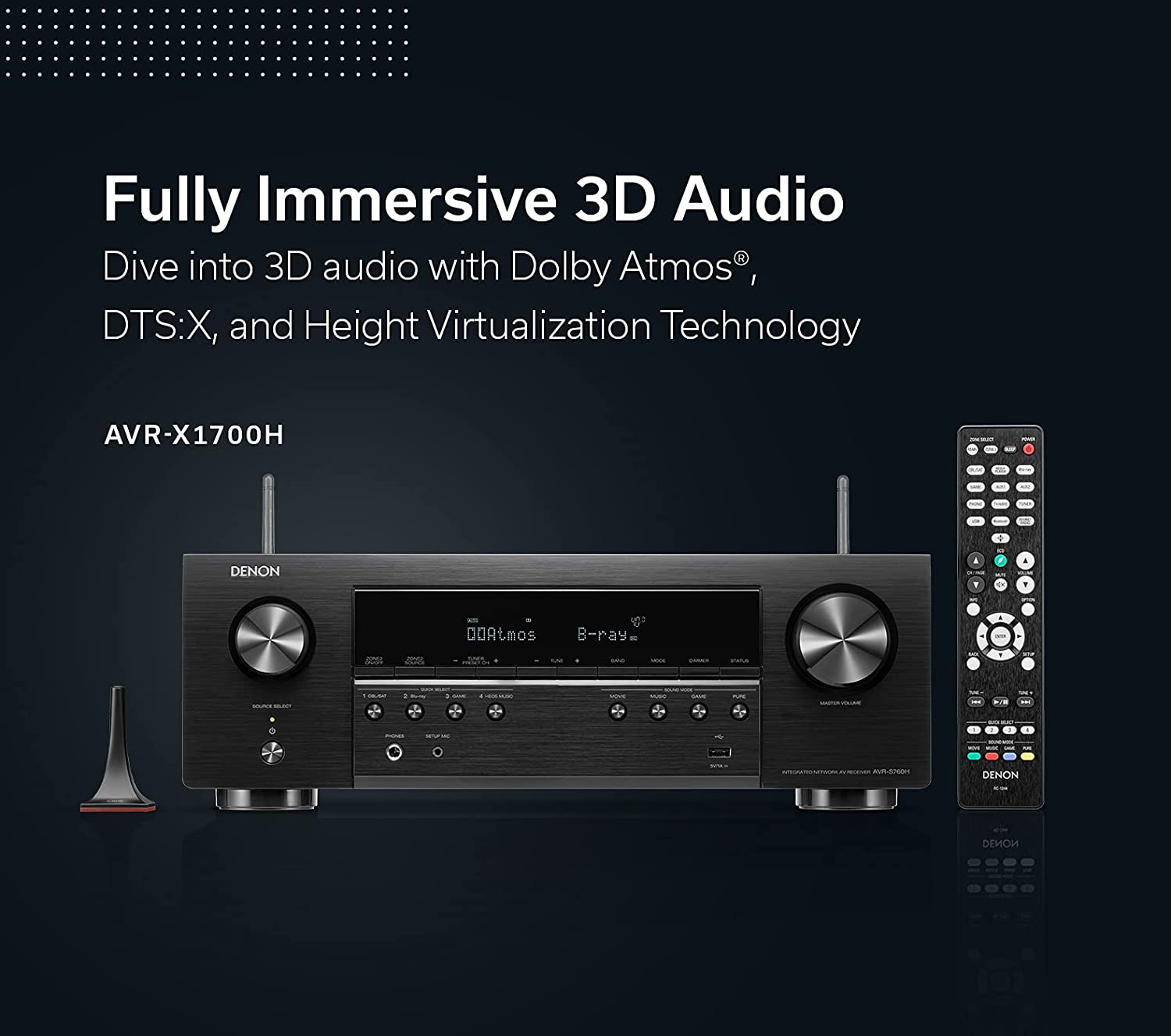 Denon AVR-X1700H 7.2 Ch FREE WHARFEDALE D300 3D (Black), Advanced 8K Upscaling, 3D Audio - Dolby Atmos & DTS Virtual:X, Amazon Alexa