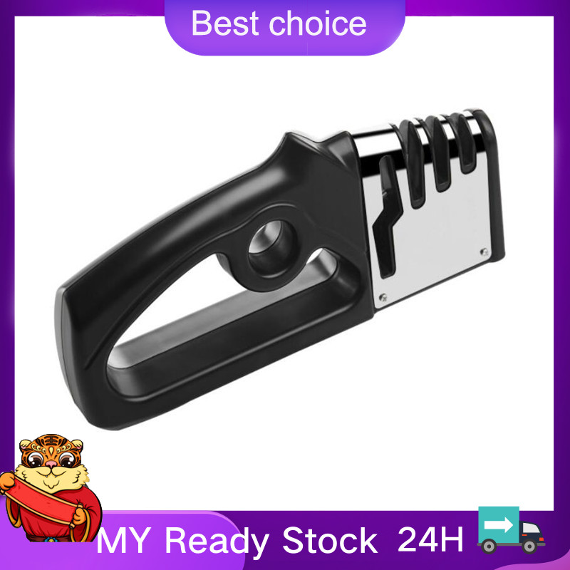 Suitable for straight knives and scissors; Designed with incredible 4-slot system; Non-slip base makes the sharpener steady; Ergonomic handle ensures comfortable and stable grip; Easy to use Specifications Color: black/green Material: ABS+silicone+tungsten steel+ceramic+diamond Size: 200*95*40mm Package list: 1*knife sharpener Descriptions: * Material: Hard blades, ABS, silicone, tungsten steel, diamond and ceramic, durable material. * 4-stage knife sharpener: With our incredible 4-slot system, including diamond sharpening rod for coarse, ceramic sharpening rod for fine sharpening and polish, tungsten sharpening rod for blunt blades and scissors sharpening rod. * Application: Designed for straight knives, such as, chef knife, steak knives, steel knives and scissors and more. * Non-slip base: Anti-skid silicone base makes the sharpener steady and easy to hold. * Handle: Ergonomic handle ensures comfortable and stable grip when sharpening. * Easy to use: Simply position the dull blade on the sharpening slot and make razor-sharpness in just seconds. * Warm tips: 1. Not suitable for serrated blades and ceramic knives. 2. Please keep the sharpening tool clean and dry. * Notes: 1. Please allowed 1-3mm differences due to manual measurement, thank you! 2. Due to the difference between different monitors, please understand that the picture may not reflect the actual color of the item. Packing list Package list: 1*knife sharpener