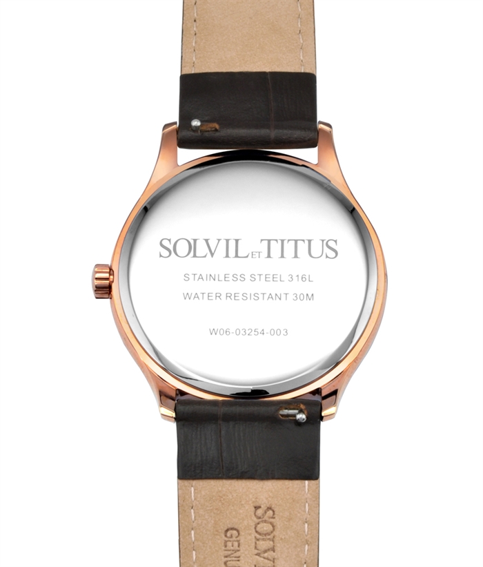 Solvil et Titus Classicist Men's Small Seconds Quartz in Silver White Dial and Dark Brown Leather Strap W06-03254-003