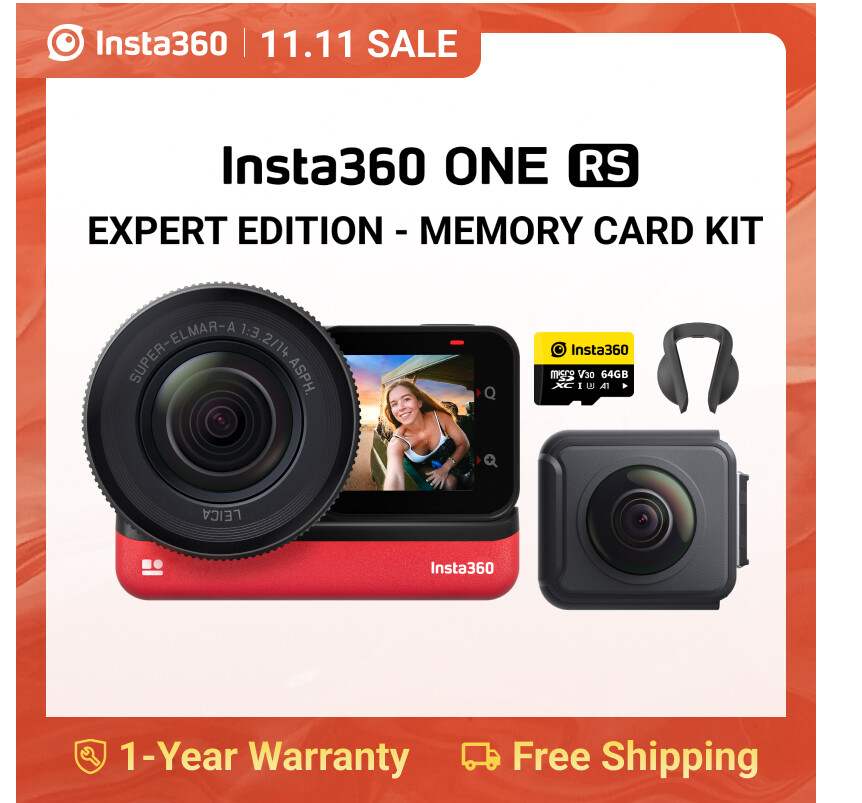 Insta360 ONE RS – Waterproof 4K 60fps Action Camera & 5.7K 360 Camera with Interchangeable Lenses, Stabilization, 48MP Photo, Active HDR, AI Editing