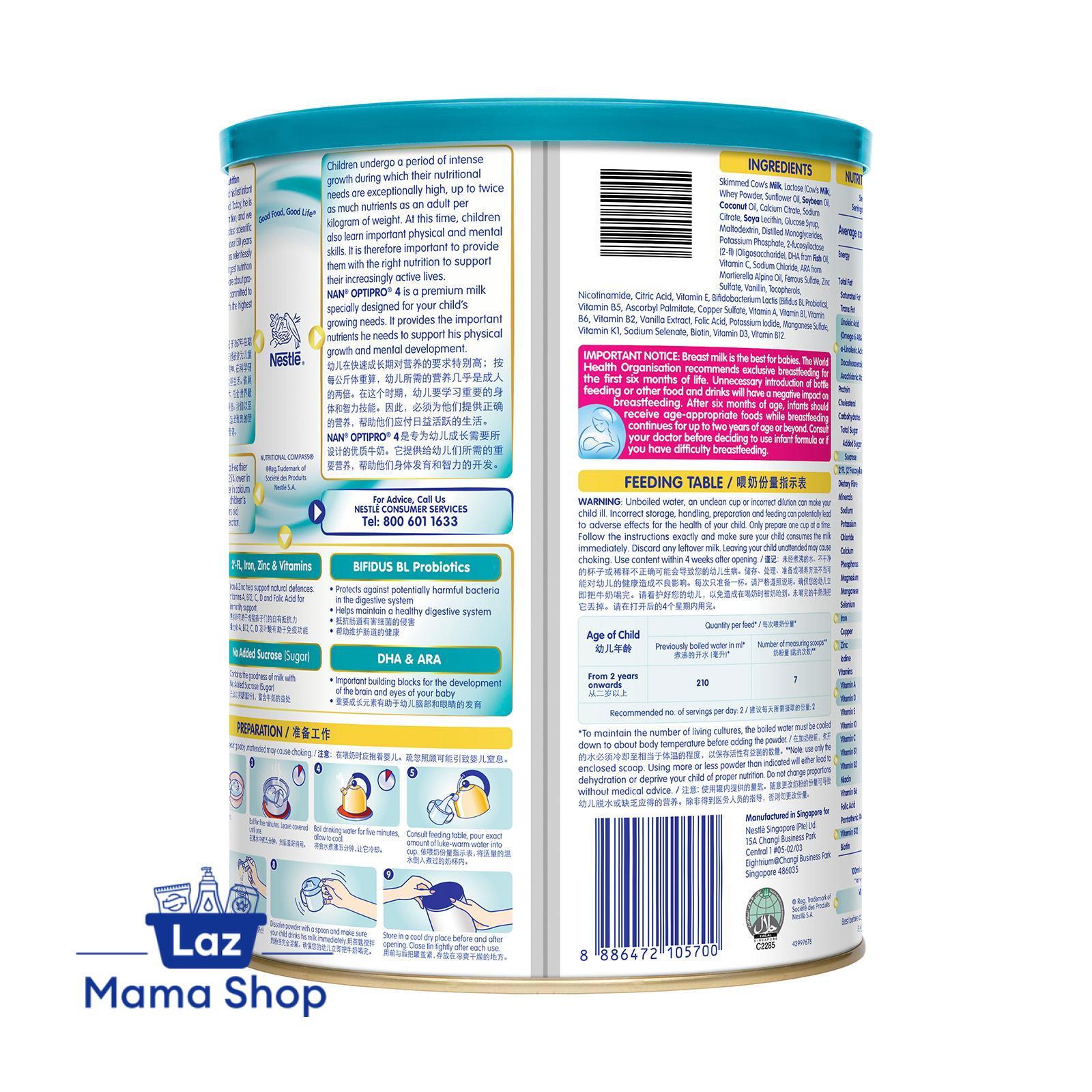 Now with 2'-FL! NAN® OPTIPRO® 4 is a Healthier Choice product. It is 25% lower in sugar and 25% higher in calcium than regular growing up milk.