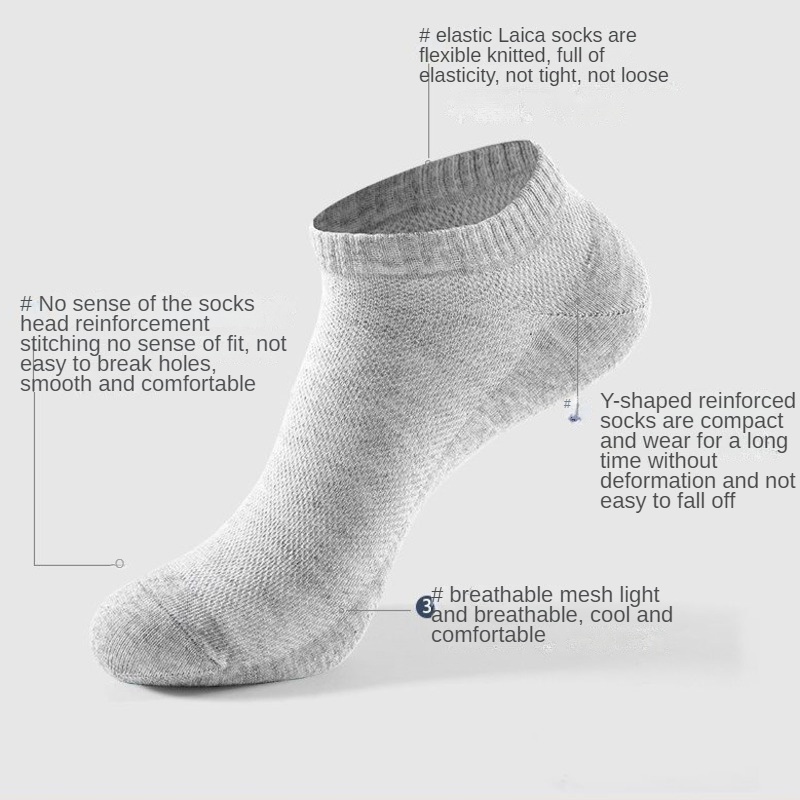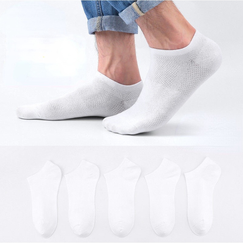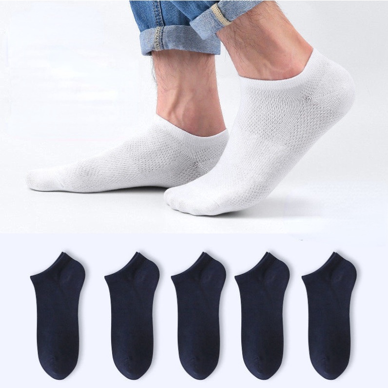 (SG Stock) 5 Pairs Men's Thin Boat Socks Solid Color Business Ankle Socks Sports Breathable Deodorant Socks Low Socks