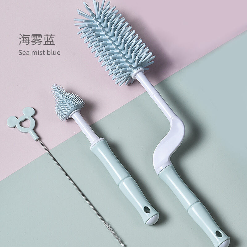 Feeding Bottle Cleaning Brush Silicone Baby Nipple Brush Straw Cleaning Artifact Feeding Bottle Shabu Set Milk Bottle Brush Storage Rack