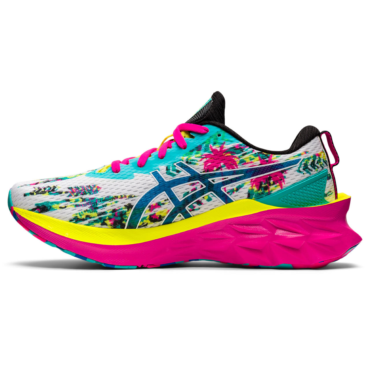 This colorway is inspired by the heritage of our traditionally vibrant running shoes. It features bright tones and energized graphics that are complemented with various coastal caricatures.