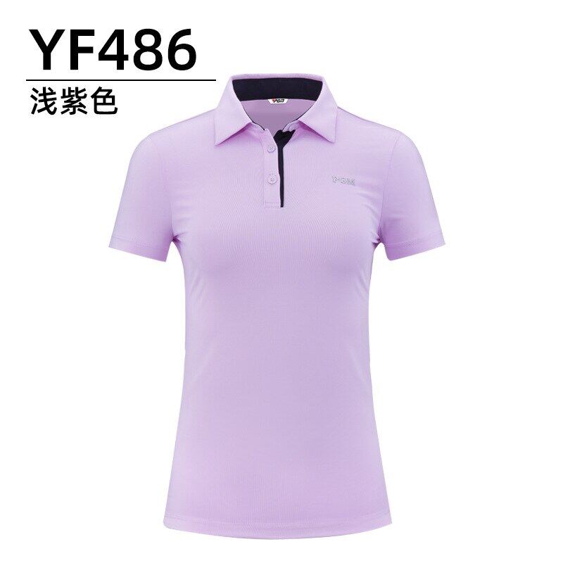 Product Description Brand PGM Item No. YF486 Name Ladies Solid Color Short Sleeves Size S/M/L/XL Color White, light blue, purple, navy blue Fabric 92% polyester + 8% spandex product description Functional sports fabric, skin-friendly and comfortable, free to stretch.