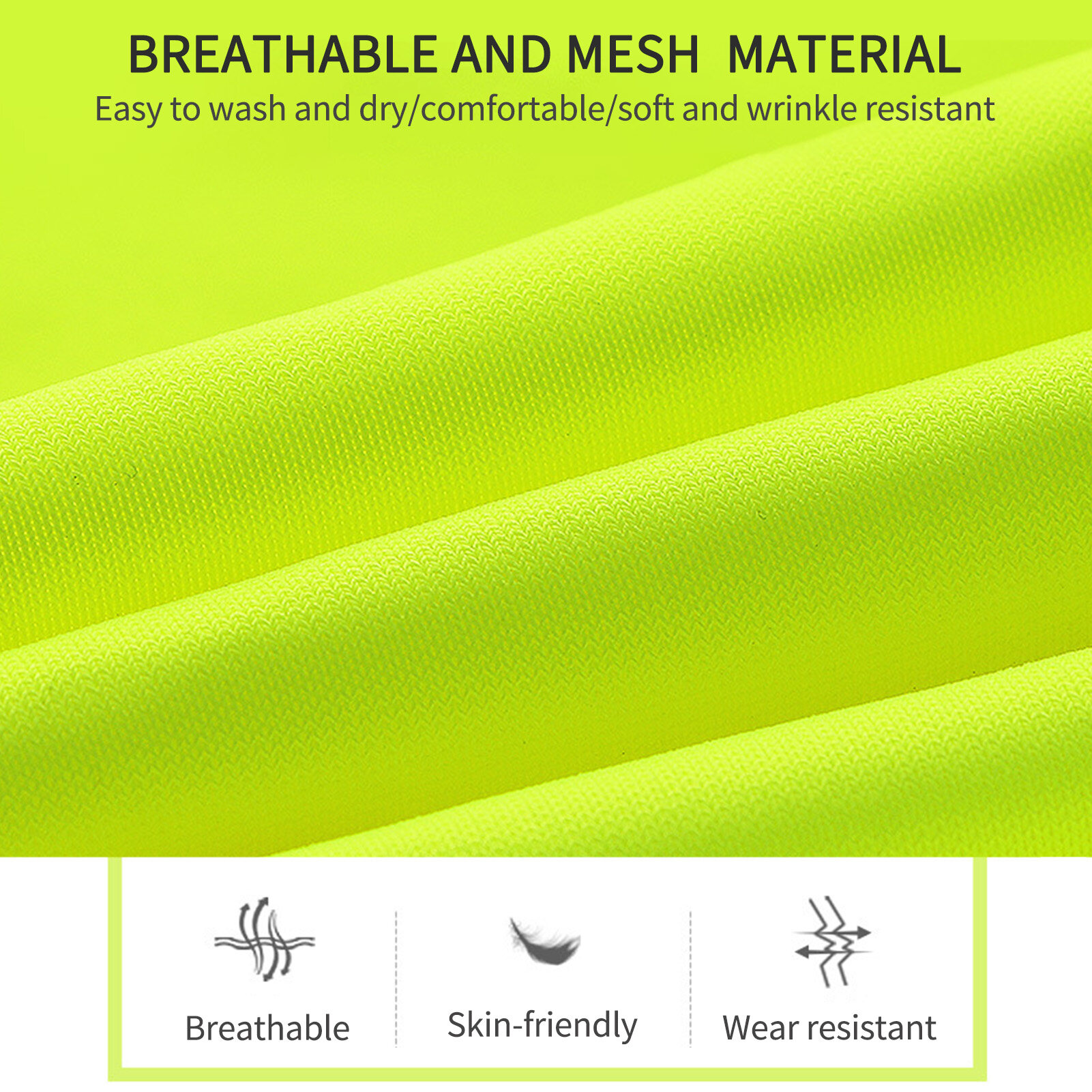 Style and Materials: Slim Cutting Design with 100% polyester hi-vis reflective breathable and mesh body material, durable, breathable, lightweight and machine washable in cold water(25 times).