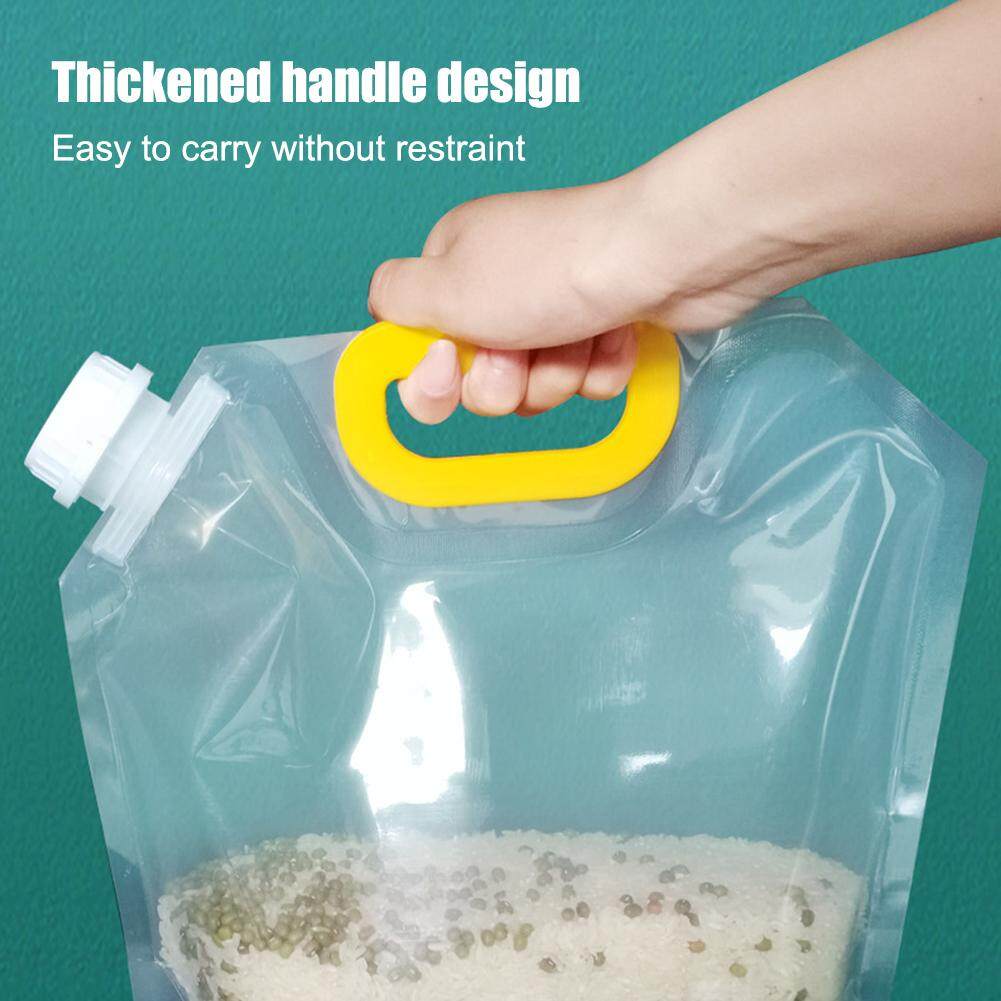 5L can hold about 5kg of rice and about 10kg of pure water