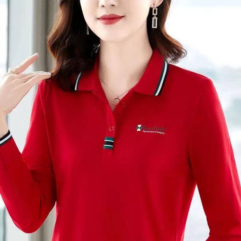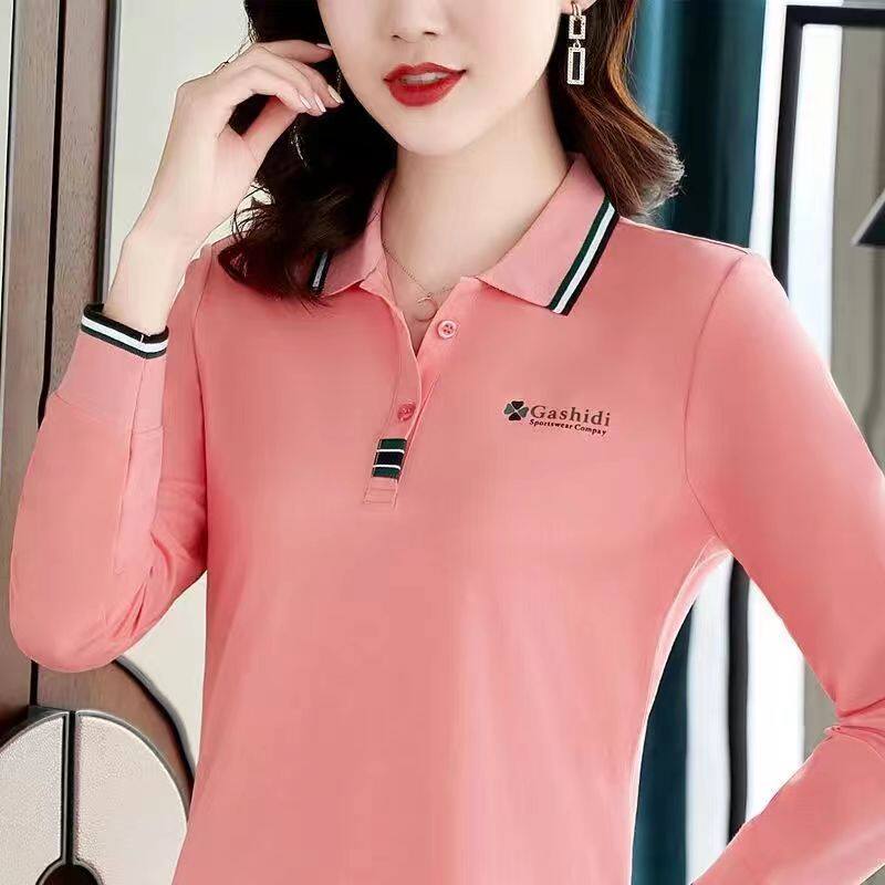 100KG Fat Girl Can Wear Spring and Autumn Fashion Light Green Casual Sport Long Sleeve Women Polo Shirt Loose Plus Size Lapel Blouse Lady Shirt Polo collar T-shirt