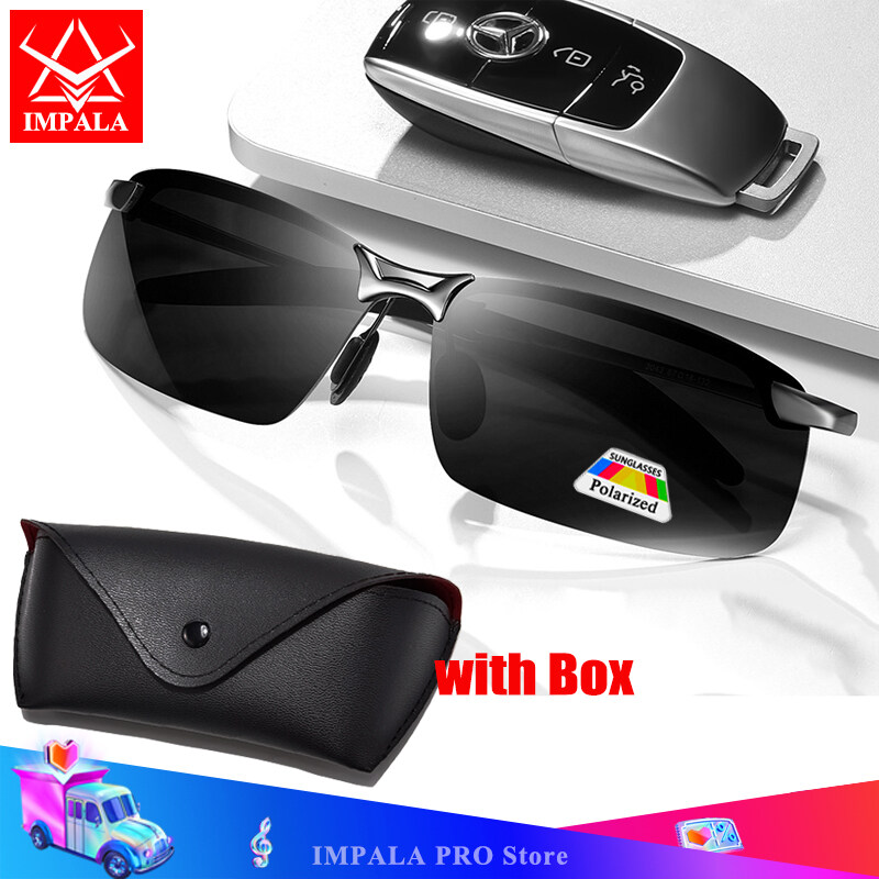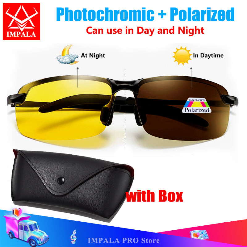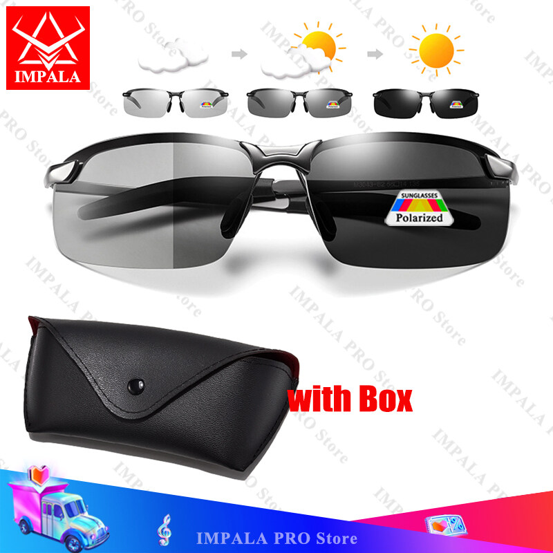 IMPALA PG036K Fashion Photochromic Polarized Sunglasses for Men Metal Frame Anti Glare Resin Anti Shatter Lens Day and Night 2 in1 Outdoor Sports Eyewear for Driving and Fishing with Glasses Case