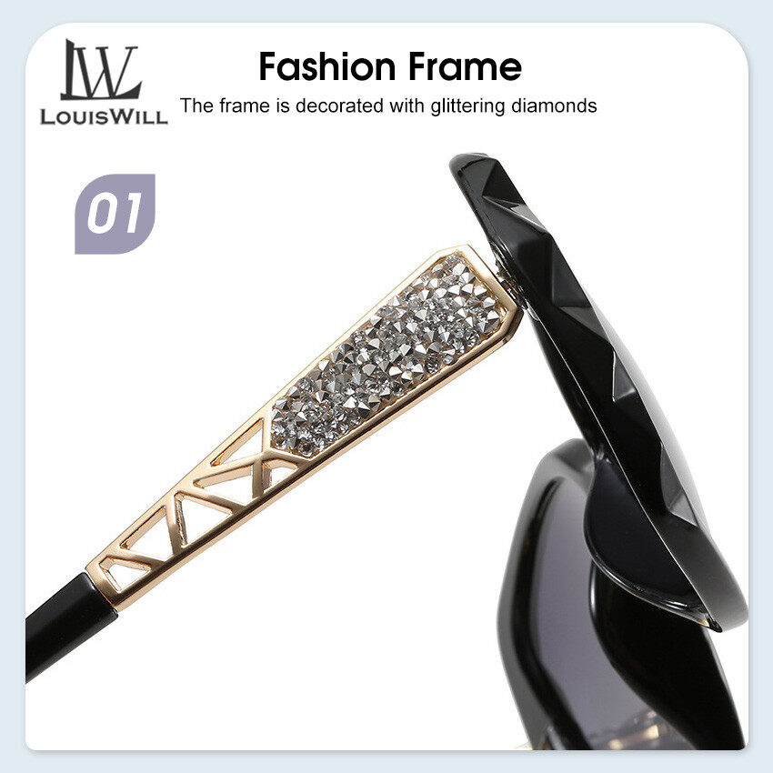 LouisWill Women's Sunglasses Large Frame Sunglasses Diamond Set Sunglasses UV Protection Vintage Oversize Sunglasses Female Eyewear Sun Glasses Sunglasses For Outdoor Travelling Driving