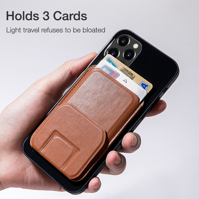 ?BlueWow Premium Leather Magsafe Phone Card Holder Magnetic Wallet for iPhone 12/13 Card Holder KB01 Phone Stand