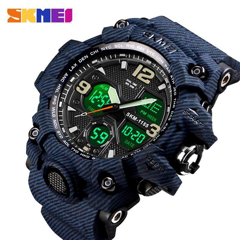 SKMEI New Men Sport Watches Digital Fashion Watch Chronograph Dual Display Alarm 50M Watwrproof EL Light Wristwatches 1155B