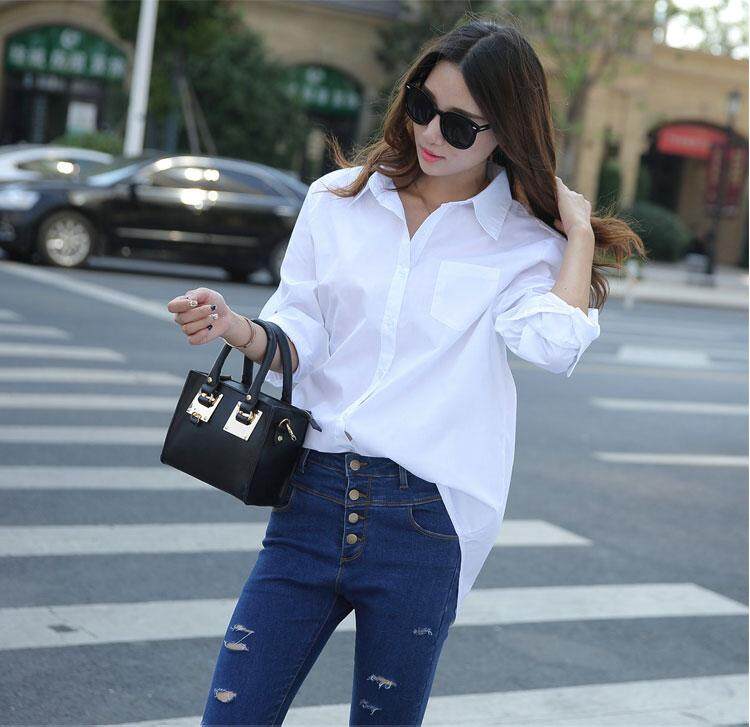 Autumn Spring Women Long White Shirts All-match Good Quality Long Sleeve Lady Casual Cotton Blouse Tops