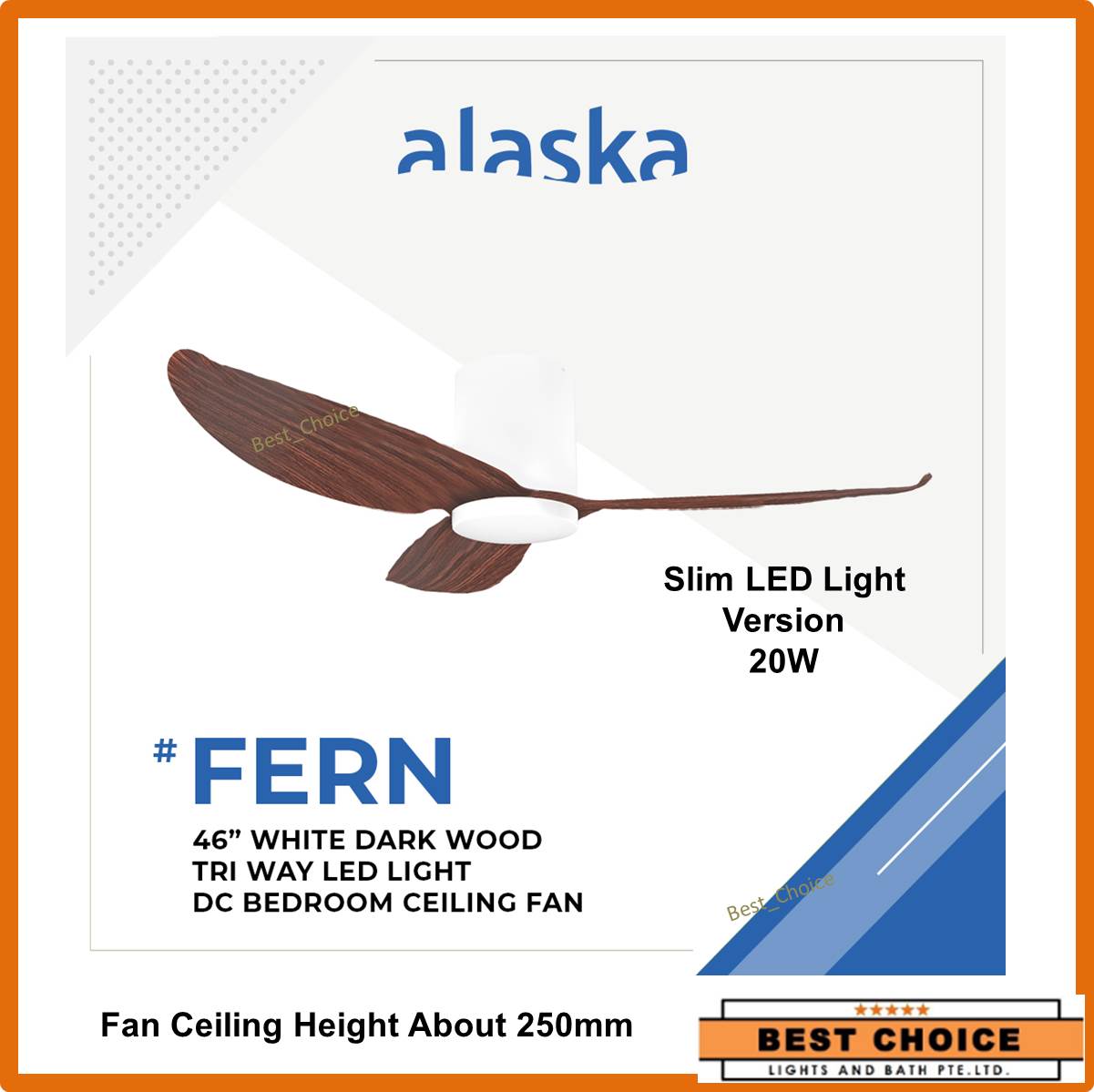 Alaska Fern II ceiling fan 46/56inches Hugger series DC with 20W LED lights Slim Version-Suitable low ceiling