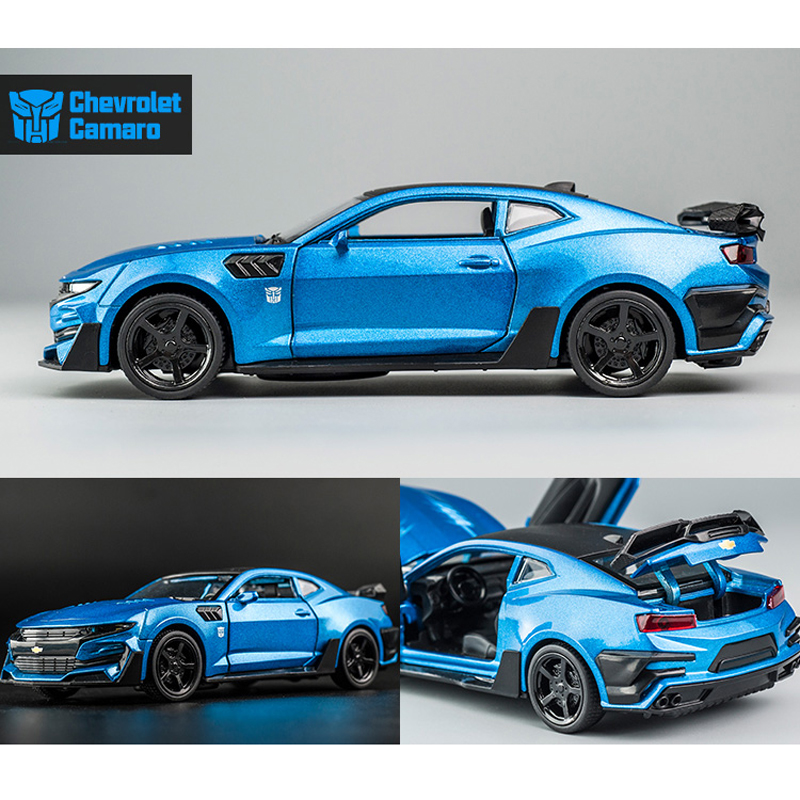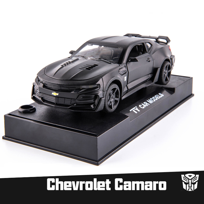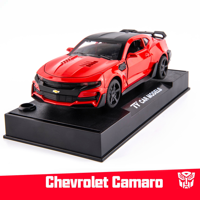 Name: Bumblebee CamaroColor: red, black, yellow, blueMaterial: Alloy PlasticProportion: 1:32Control method: pull backFeatures: Lights and music, The door can be openedProduct size: 16 * 6.5 * 4.6cmApplicable age: ≥3 years oldPackaging: Color box / no color box