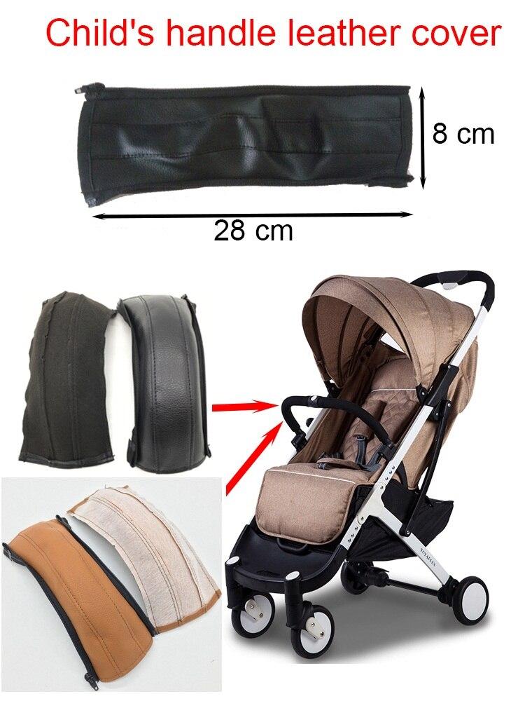 4pcs/set baby stroller accessories handle leather cover stroller armrest leather protective case pram armrest leather cover for yoyaplus stroller and more prams (Gray 4 pcs/set)