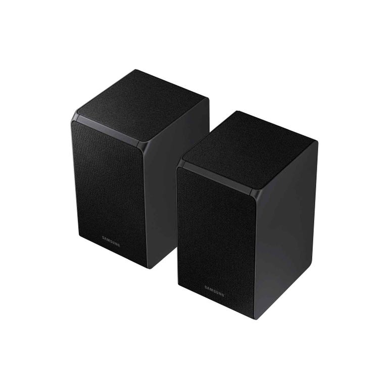 Adding a vertical element for three-dimensional sound, the included Samsung Wireless Rear Speakers with up-firing drivers reflect sound off the ceiling to deliver breathtaking overhead audio — giving you the experience of the theater right in your home