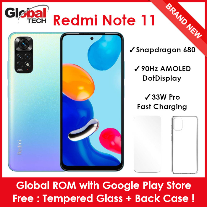 Xiaomi Redmi Note 11 / 128GB ROM + 6GB RAM / Global Version (FREE : TEMPERED GLASS + BACK CASE)