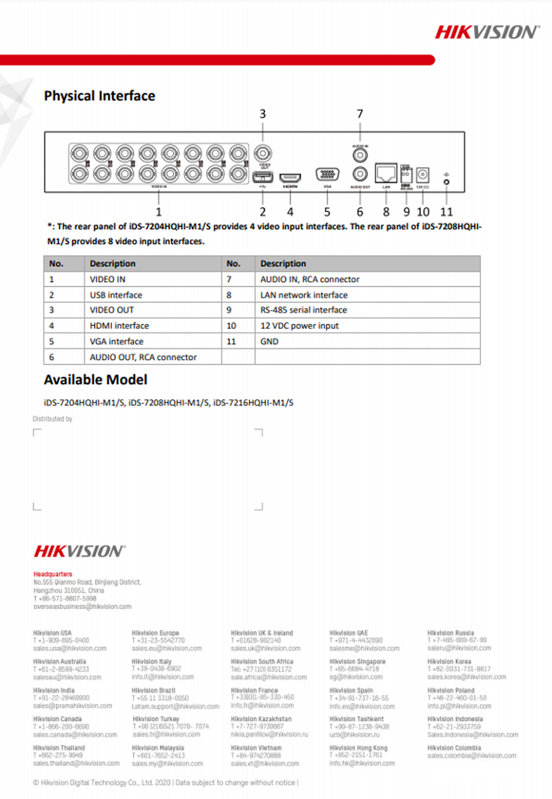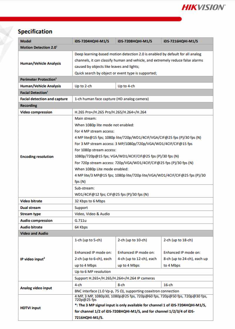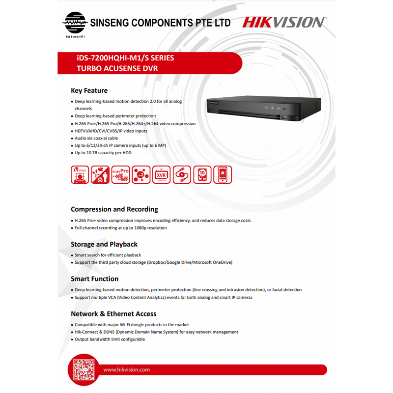 Hikvision Turbo AcuSense 8CH DVR iDS-7208HQHI-M1/S H.265 Pro+/H.265/H.264+/H.264 4MP/2MP/1MP/960H AHD/TVI/CVI/CVBS/IP 8CH Digital Video Recorder App:Hik-Connect
