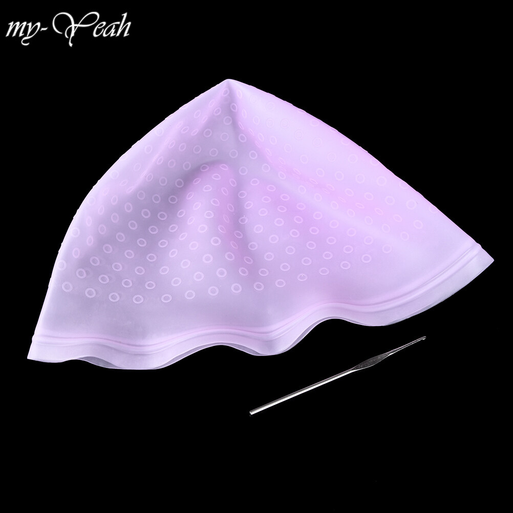 myyeah Professional Salon Reusable Highlighting Dye Frosting Tipping Cap Hair Coloring with Metal Hook Silicone Caps Hair Care Styling Tool-Pink