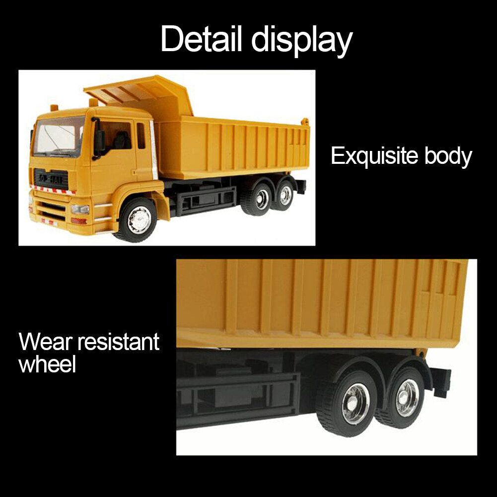 Bafada【Ready Stock】8-Channel USB charging RC cars RC Dump Truck 2.4Ghz Remote Control RC Construction Vehicle Toys for children boys Xmas birthday gifts yellow color RC Engineering truck model Beach t