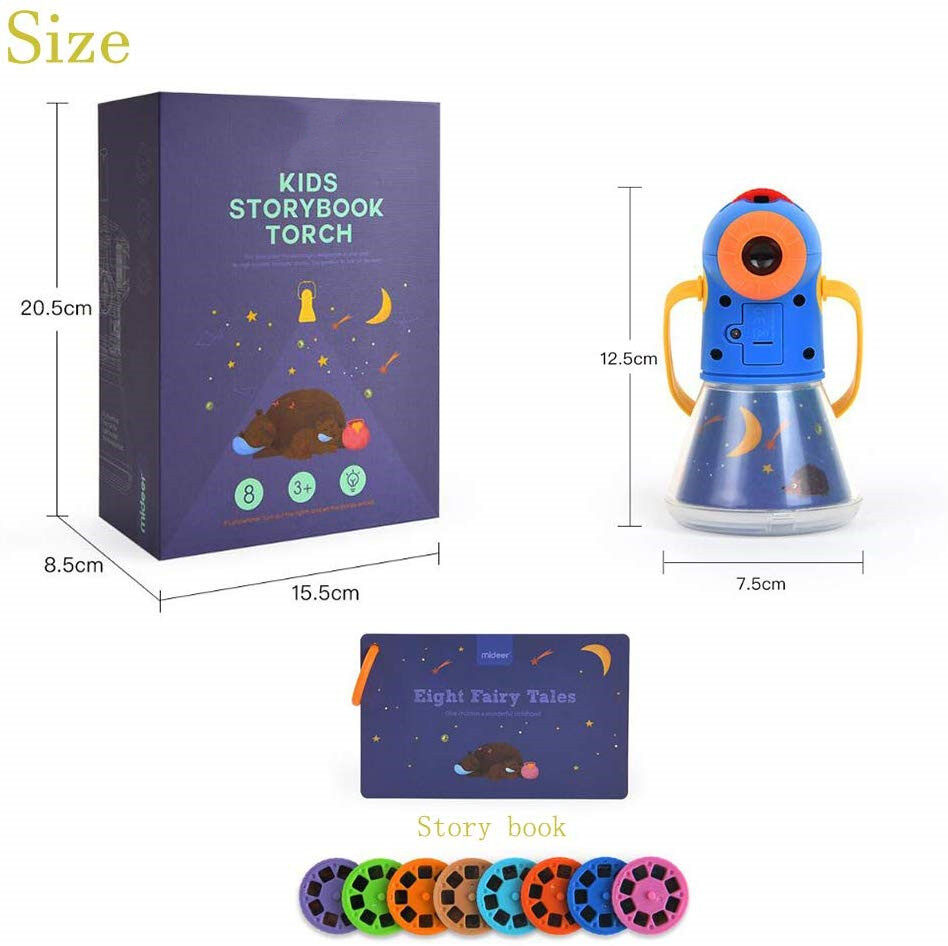 【TELL STORY TO KIDS】There are 8 fairy tales Movies include 64 Slides photos in the Flashlight,turn on the Flashlight and tell a story to your kid,playing like a child reading a picture book. everyone in the family can enjoy themselves before going to bed and take baby to a gentle sleep.Through the cute image and story,