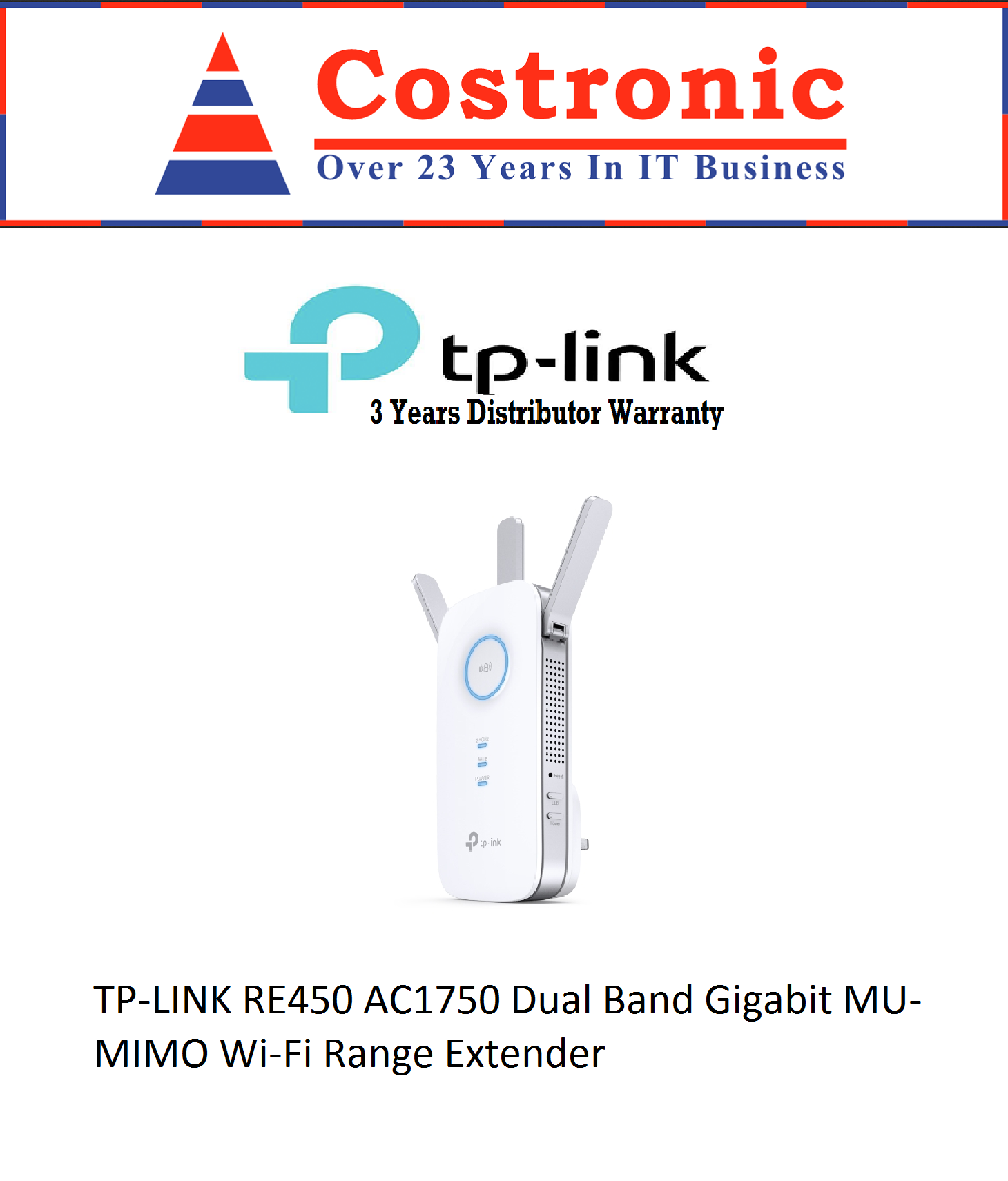 TP-Link RE450 AC1750 Dual Band Gigabit MU-MIMO Wi-Fi Range Extender/3 Years Distributor Warranty